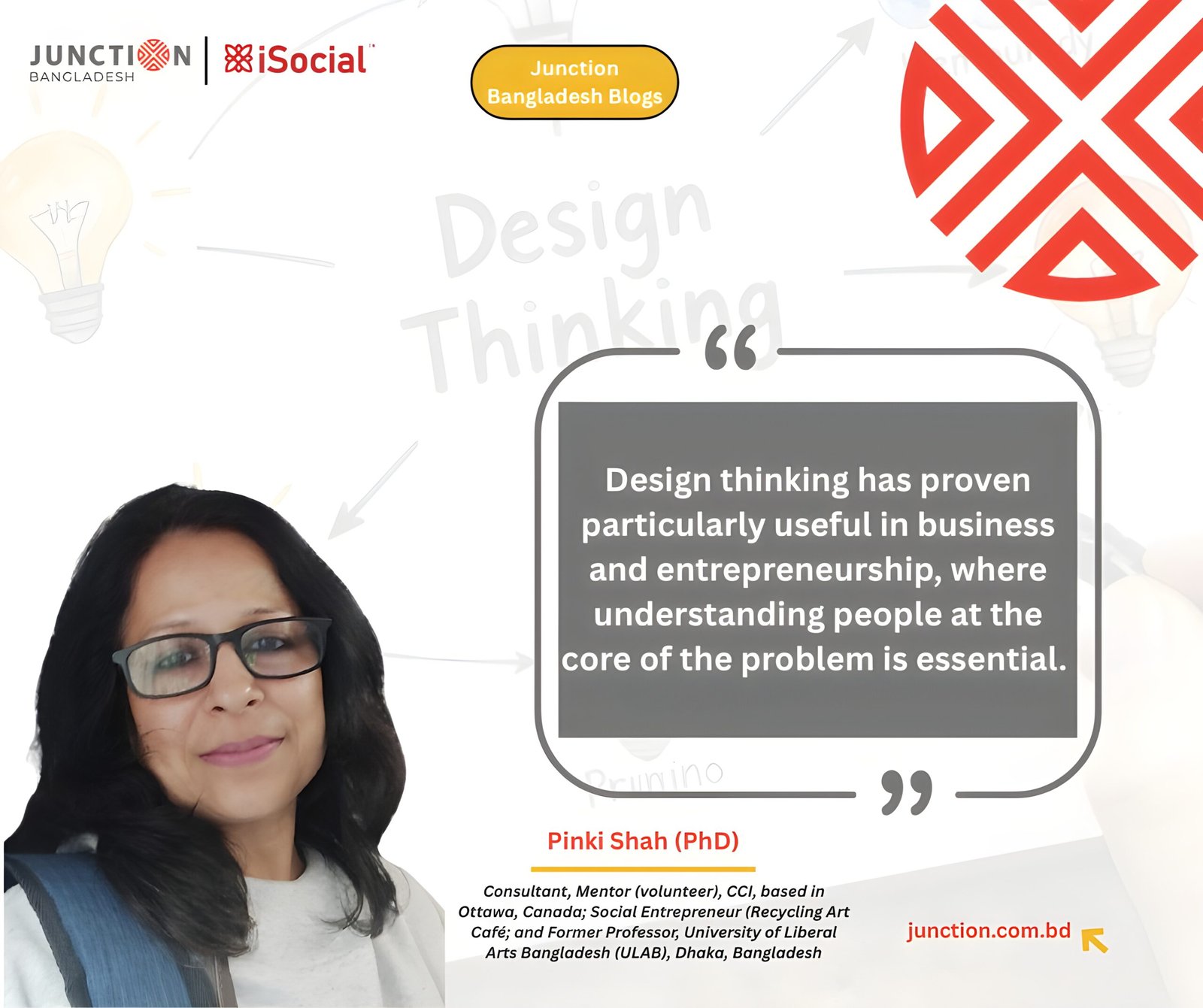 Pinki Shah (PhD) is a Consultant, Mentor (volunteer), CCI, based in Ottawa, Canada. She is also a Social Entrepreneur, running Recycling Art Café and Former Professor, University of Liberal Arts Bangladesh (ULAB), Dhaka, Bangladesh. She can be contacted via pinkishah3@gmail.com.